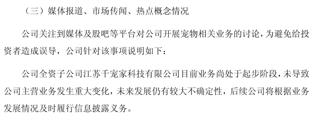 也许有人会疑问:明明已经在紧锣密鼓布局宠物业务,为上市公司跨界转型探路,为何大千生态显得如此“低调”?