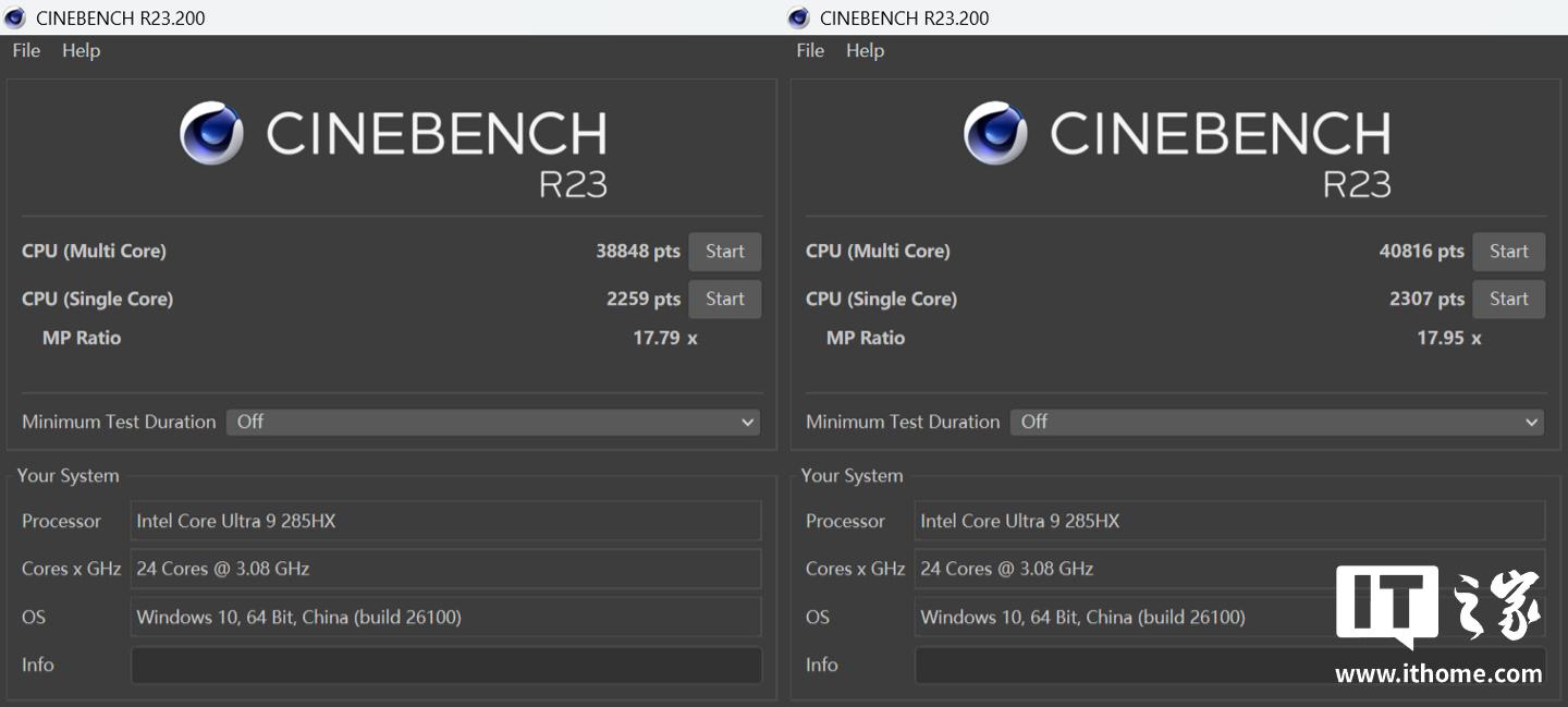在 BIOS 均衡模式下,CPU 多核成绩 38848 分,单核成绩 2259 分;在 BIOS 性能模式下,CPU 多核成绩 40816 分,单核成绩 2307 分;