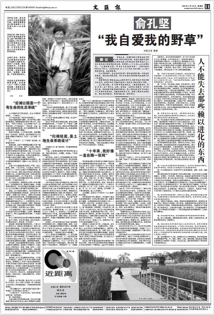 现重发旧文《俞孔坚“我自爱我的野草”》(刊于《文汇报》2010年4月28日),寄托哀思。